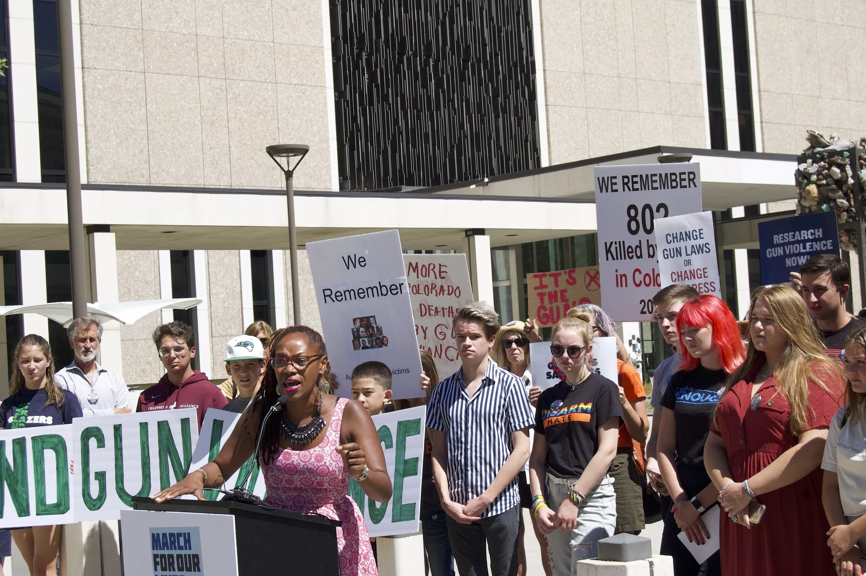 Fields drew attention to the prevalence of “everyday” gun violence, especially in communities of color. “Within twelve hours, we have had three shootings in Colorado,” she said. Three people were killed in four apparently unrelated shootings. “I just left a mother in Montbello, who is personally connected to me, whose son was murdered,” Fields said.