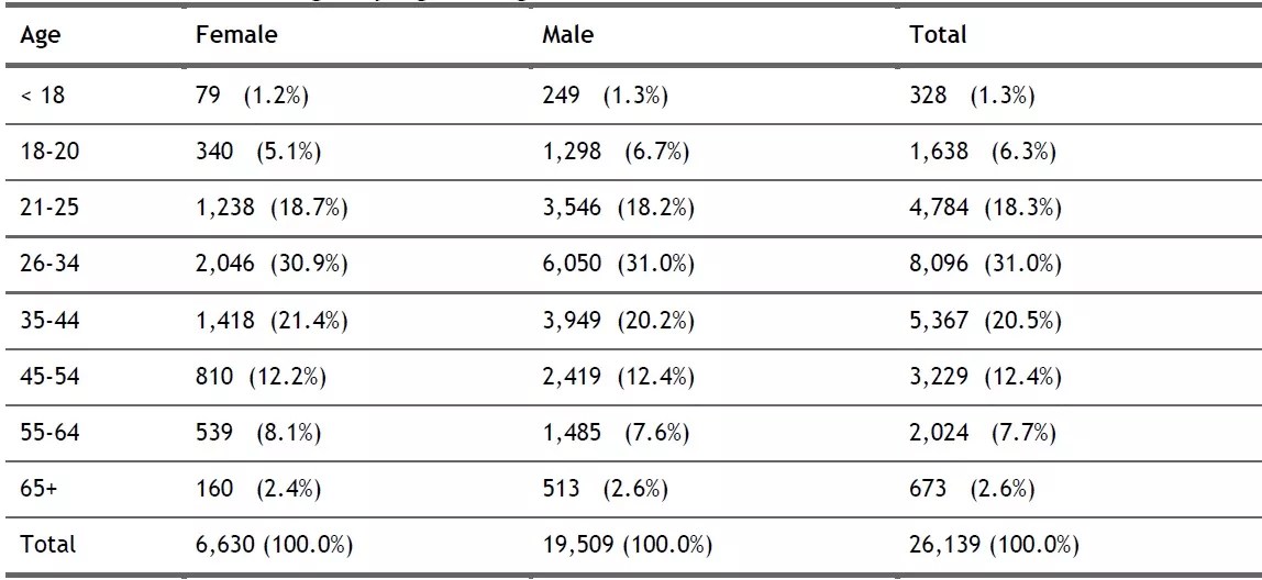 The demographics of DUIs in Colorado are simple: During 2019, around three of every four cases involved a male. Individuals in the 26-34 age range accounted for 31 percent of DUI court filings that year, but men were between 2.5 and 3.7 times more likely than women to be the target of prosecution: