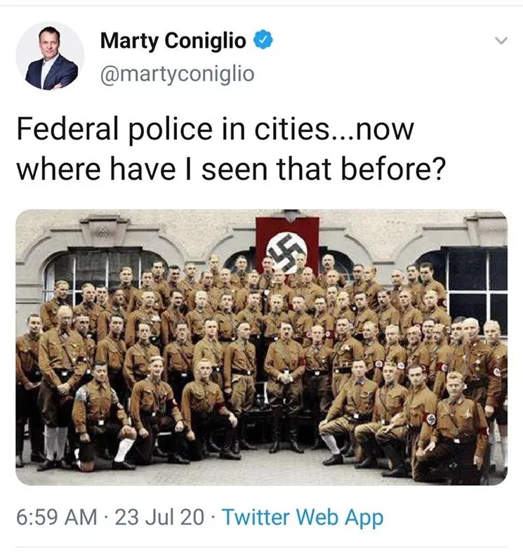 I watched the president say that he would deploy similar forces to cities and states governed by his political rivals. This would in essence be a national police force used for “law and order” at the behest of one political party over the objections of local elected officials. Sorry, folks: That ain’t conservative, small government no matter how you spin it. By the way, what jobs do those masked guys in camo normally do? Where are they from? Why did they need camo? Has anyone missed them at their regular jobs?