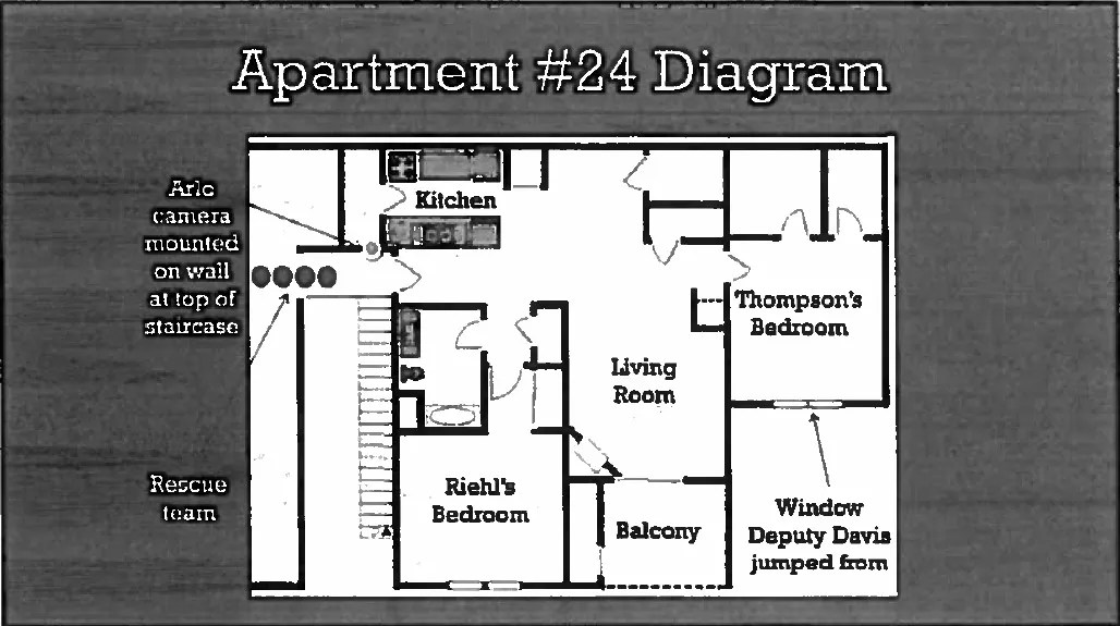 Davis led the quintet into the apartment, carrying a ballistic shield in front of him; Riehl refused to come out from his bedroom. Eventually, Parrish tried to kick down the door, leaving a hole below the door knob – at which point Riehl opened fire.