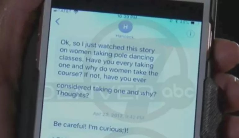 Hancock’s text message to Leslie Branch-Wise about pole dancing.