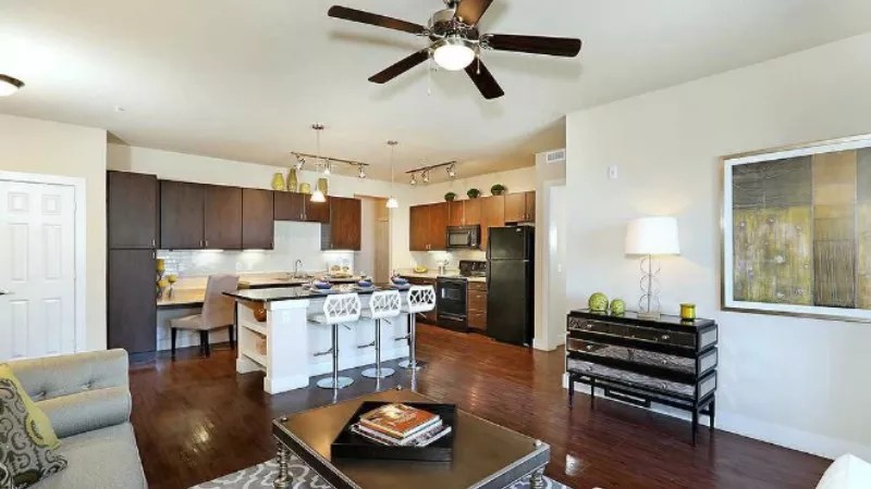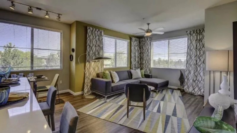 Inside the common area of a Denver apartment building offering one-bedrooms.