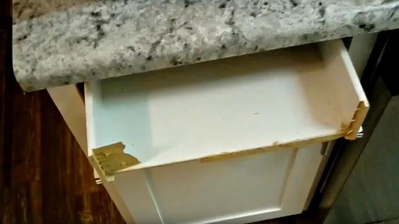 A damaged drawer in the apartment where Gieger and her two daughters moved while repairs were being made at their apartment.