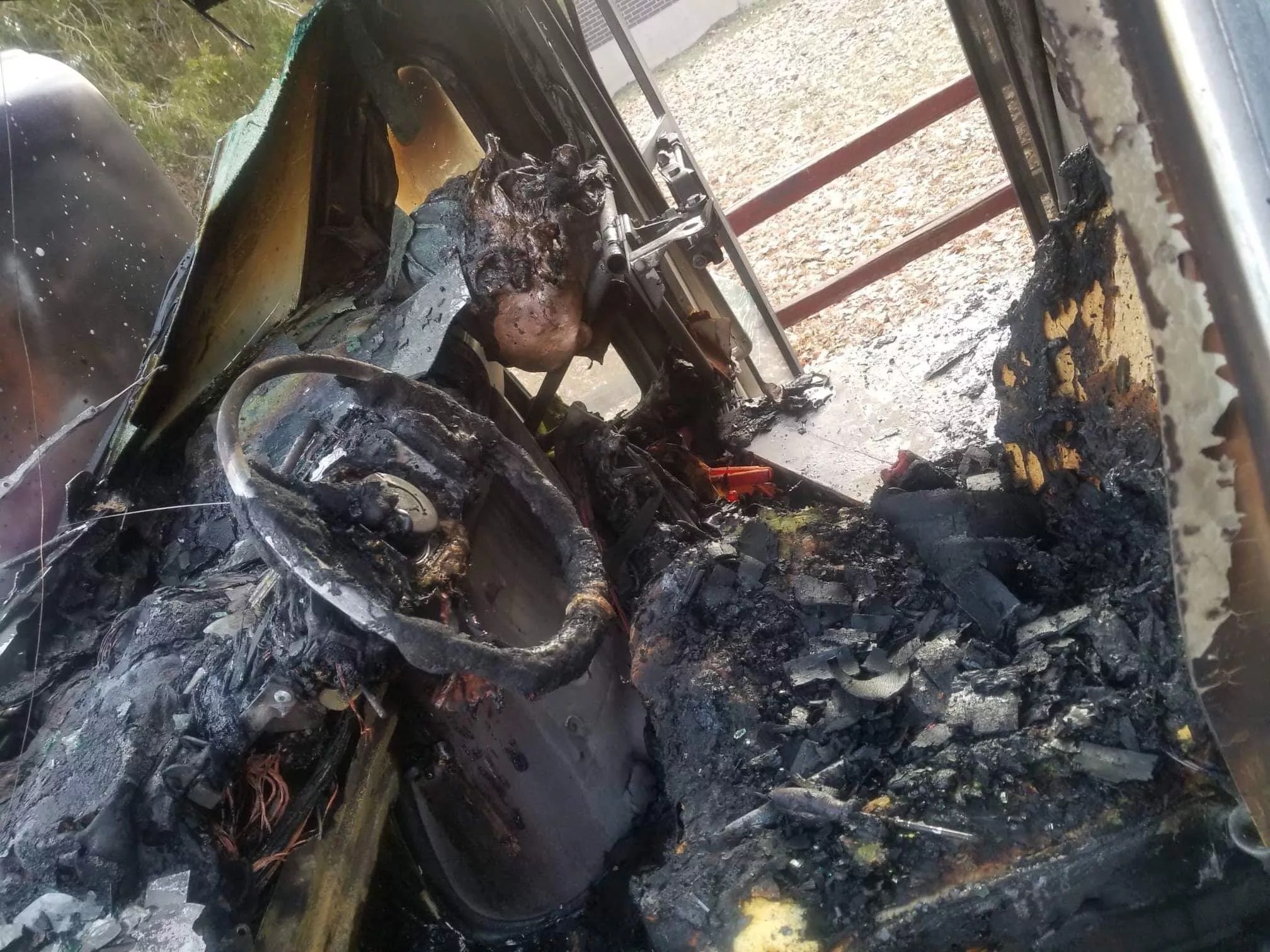 Skidmore remembers grabbing a fire extinguisher to subdue the damage, but by the time he was outside, police and fire firefighters were already at the scene, and his cannabis party bus was reduced to charred remains.