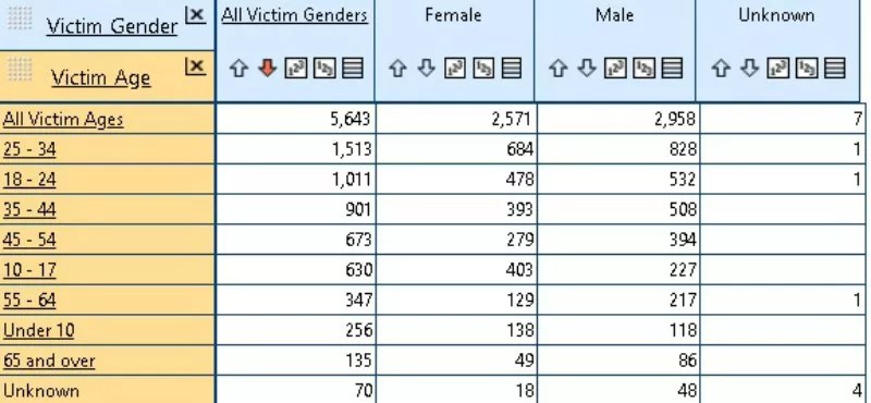 However, the largest demographic slice involves young adults between the ages of 25 and 34. The 1,513 individuals in that bracket make up around 27 percent of the 5,643 victim total.