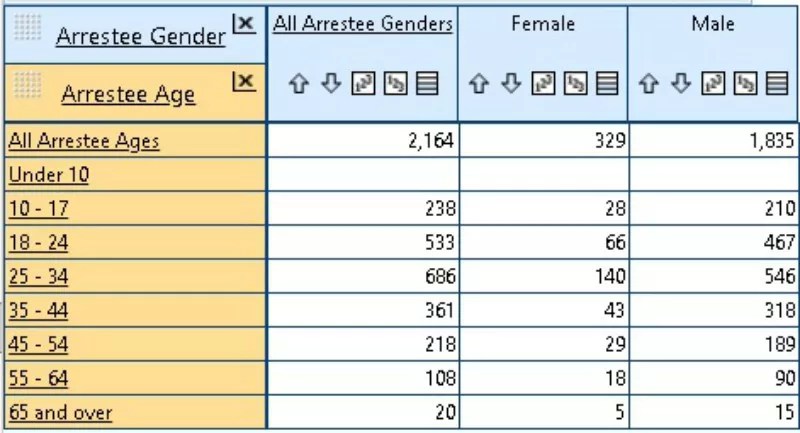 Of the 2,164 people arrested during 2017 for a violent crime in Denver, 1,835 were men and just 329 were women. That’s an 85-15 percent split.