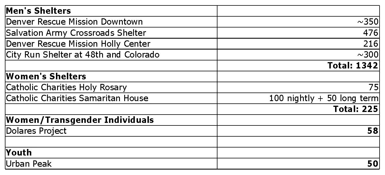Fifty beds for youth are available at Urban Peak, and 58 spaces, including ones for transgender individuals, at the Dolores Project.