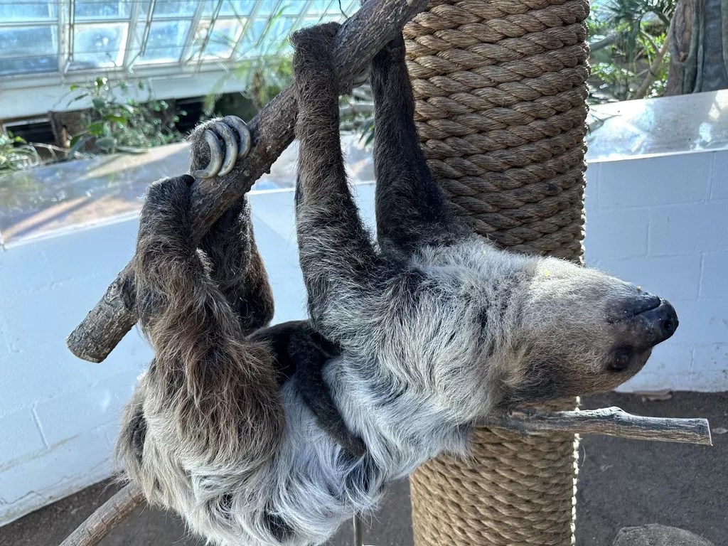 Born January 26, the baby sloth can now be seen by visitors in the Tropical Discovery building.