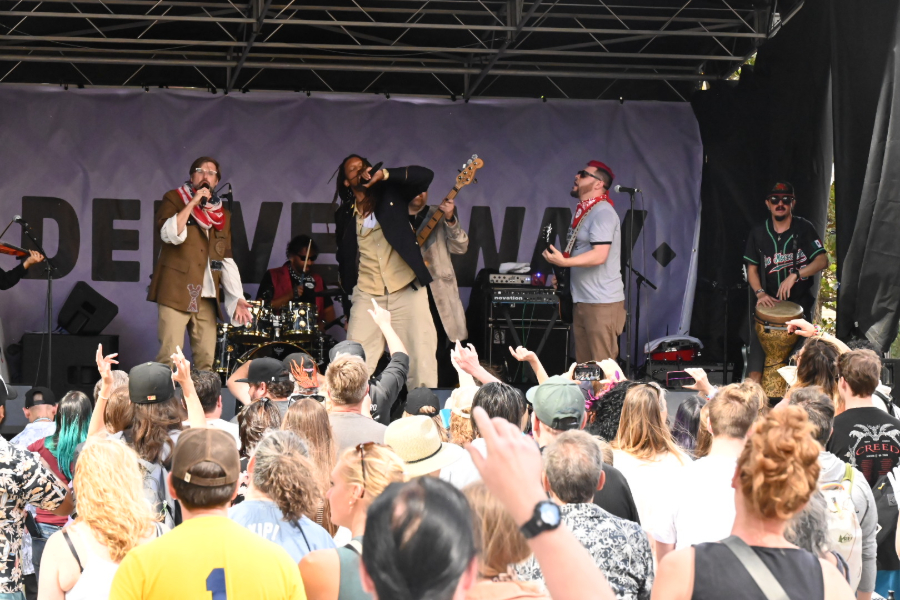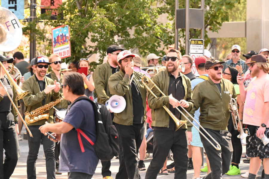 Families, kids, couples and tourists (including a noticeable number wearing Chicago gear) enjoyed performances by Denver bands Flobots and Los Mocochetes, along with aerial dancing, belly dancing, DJs, balloon animals, beer and free pork belly tacos along the stretch of 16th running from Broadway to Union Station. The full width of 16th Street was available, as the FreeRide (formerly the Free MallRide) will continue its detour down 15th and 17th streets until tomorrow, when the buses will move back to 16th.