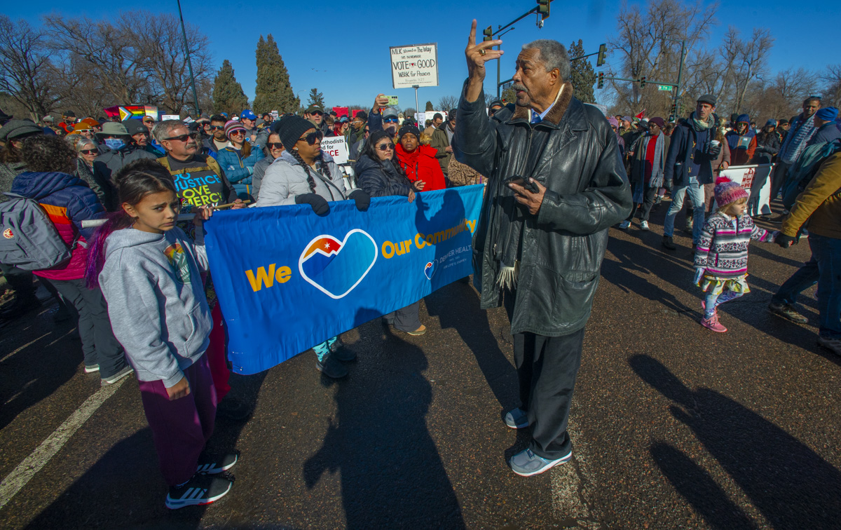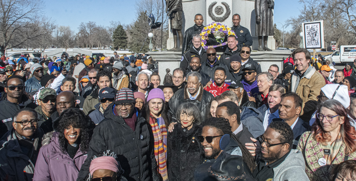 Thousands of people came out to Denver’s City Park on Monday, January 19, to listen to speeches and then march in the annual Dr. Martin Luther King Jr. Marade. On a day meant to unify and observe the words of King, groups from the Denver Police Department, Denver Health, Denver Nuggets and Denver Mayor’s office attended and mingled with members of the public; numerous elected officials were on hand, too.