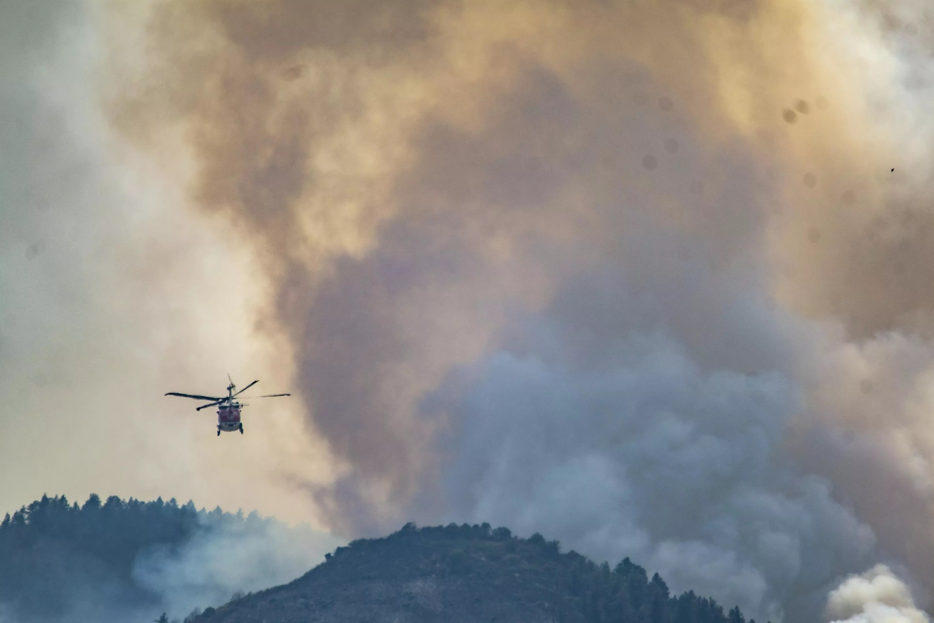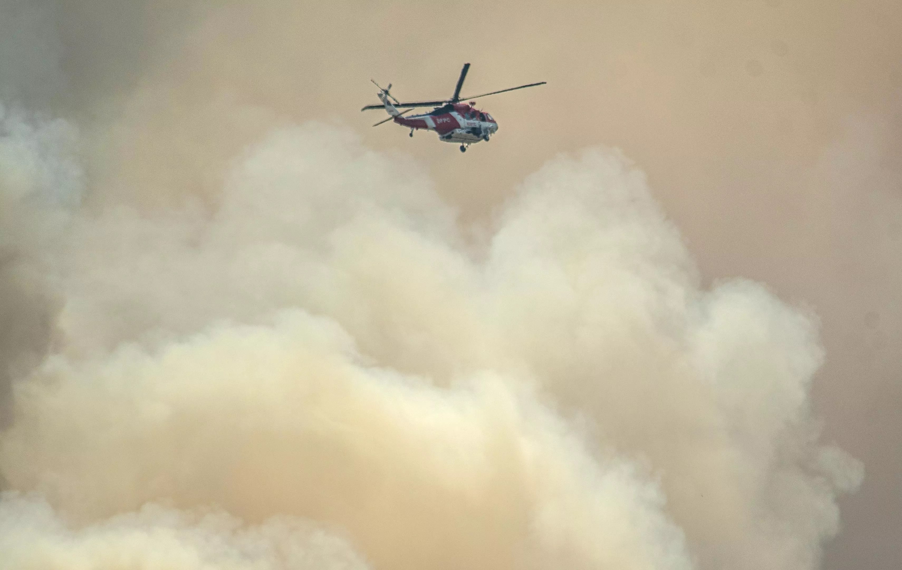 Helicopters disappeared in and out of pillars of smoke while fighting the Quarry fire.