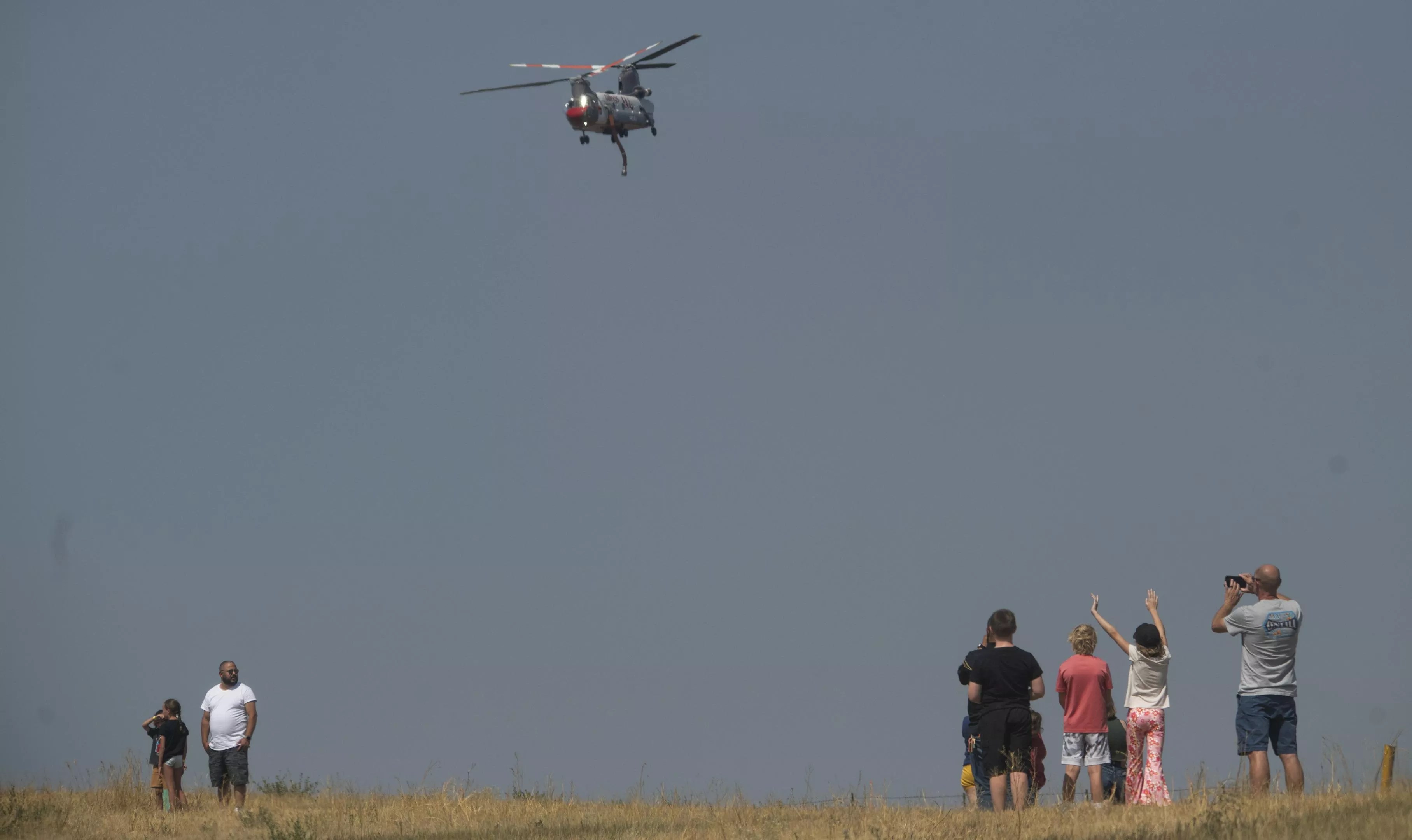 Families along the Chatfield Reservoir cheered on helicopters after refilling with water.