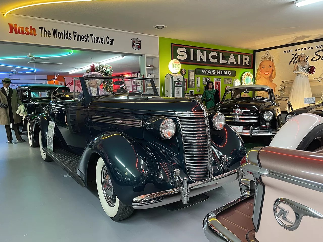 All of these life-sized, time-capsule entries provide a pleasant detour from all of the cars – not that you need one. Around 250 automobiles are on display in the four main buildings, nestled between historic billboards, thousands of collectibles and dozens of mannequins all dressed authentically, if ostentatiously, for the periods the cars represent.