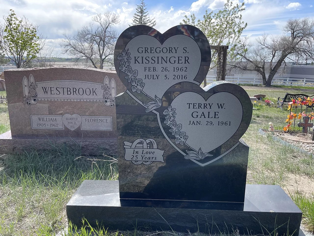 The two wed at Rambler Ranch and were married, happily, until Kissinger passed away unexpectedly in 2016. His name graces a tombstone at the nearby Elizabeth Cemetery, intertwined with an identical heart intended for Terry W. Gale. “In Love 25 Years,” the stone reads, just in front of a bench for gravesite visitors – likely Gale, and perhaps only Gale. Five minutes away, a plaque on the door of the Rambler Ranch gift shop proclaims that “The Rambler Ranch is dedicated to the memory of Greg Kissinger.”