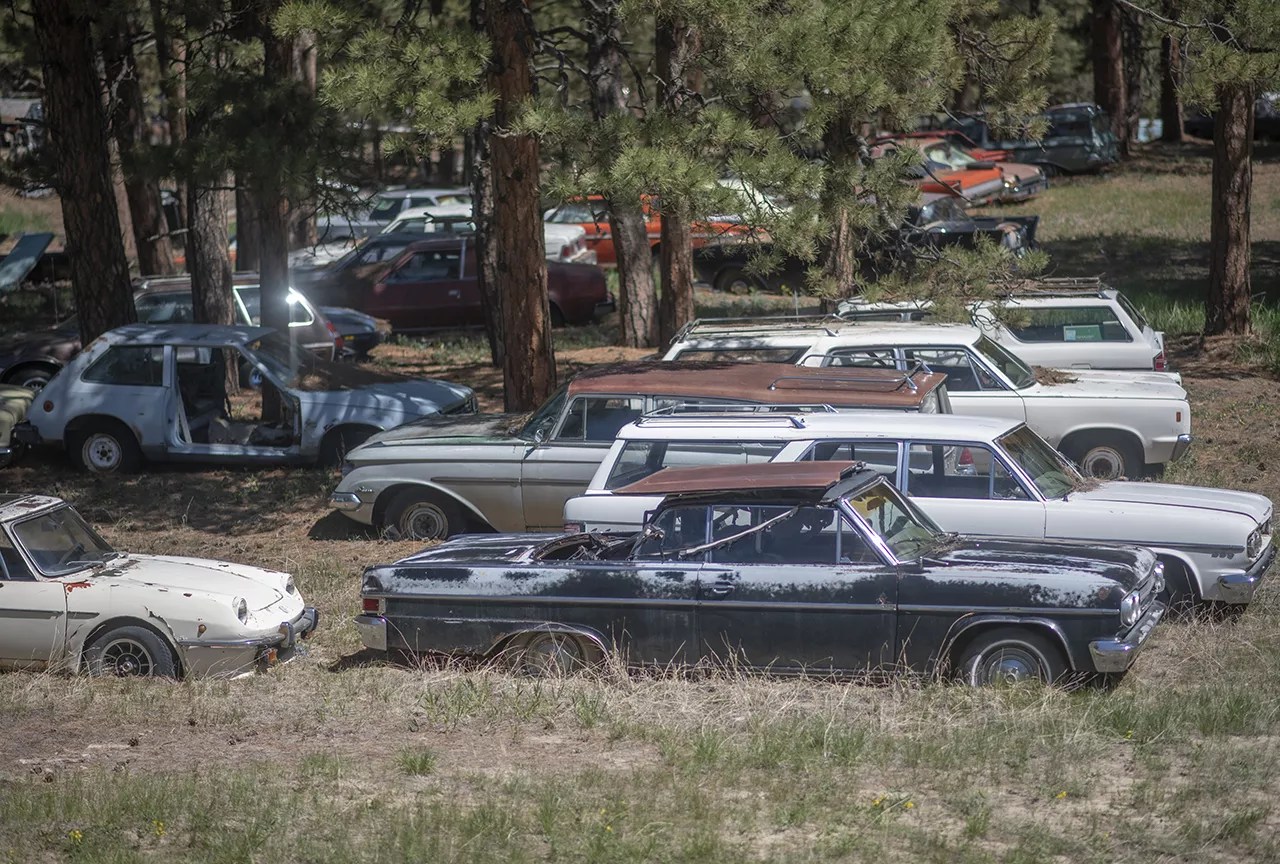 The “Boneyard” at Rambler Ranch, with hundreds of cars Terry Gales uses for parts, intends to restore, or sells or trades to other enthusiasts.
