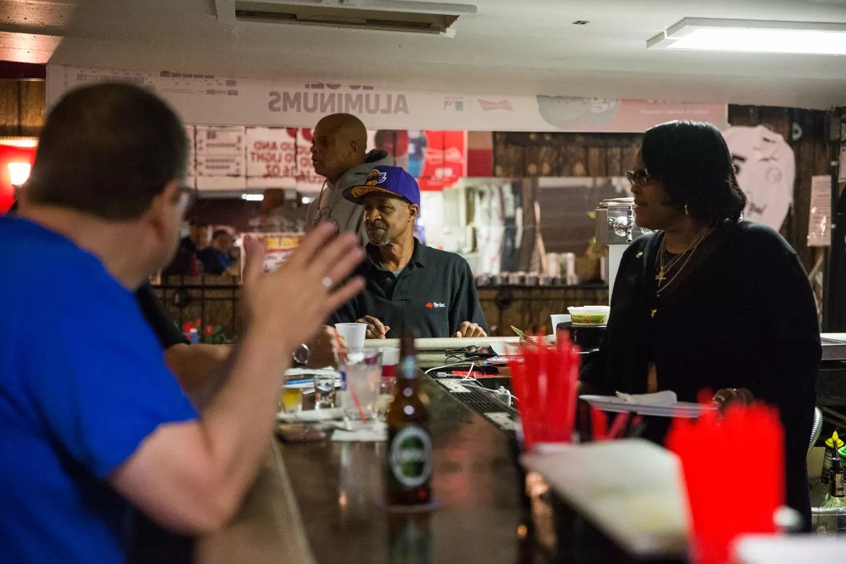 This windowless lounge sits behind a crumbling facade that’s hung with a banner announcing the presence of Randall’s; you enter through a scrappy-looking screen door with a sign warning patrons against parking in the attached lot. Come on a Friday evening and you’ll find crowds so friendly they might be at a family reunion, chatting and drinking before making their way through a buffet line of steam trays, piling plates high with Creole and Cajun food, then grabbing seats before the music starts. On a weekday afternoon, some of those same people will fold themselves into booths along the perimeter and order fried catfish, po’boys and chicken wings, then linger over empty plates until they have a chance to chat with Borne, who likes to post up at a corner of the bar, assuming he’s not cooking or bartending.