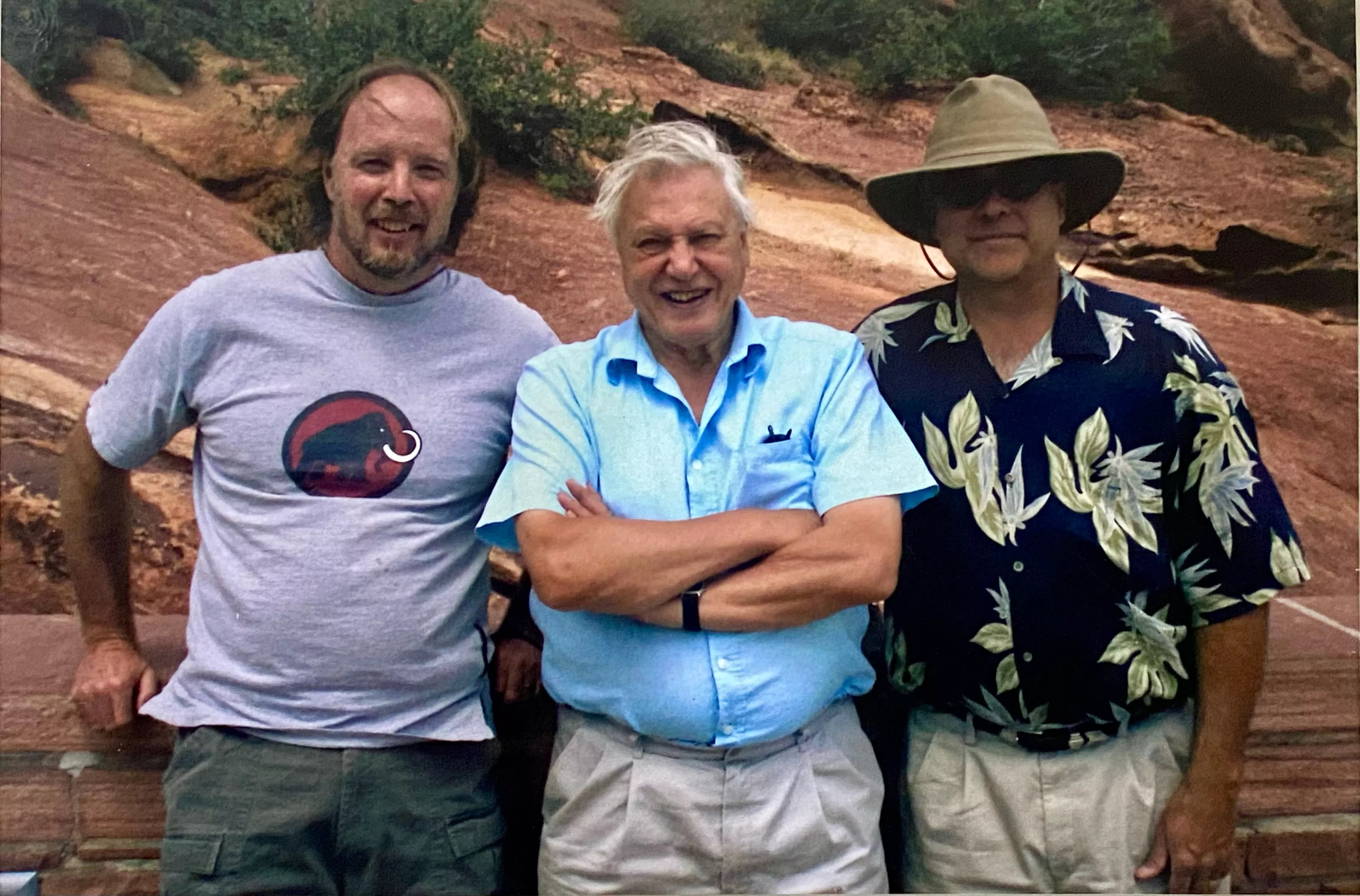 Martin Lockley (left) had friends all over the world, including David Attenborough (center).