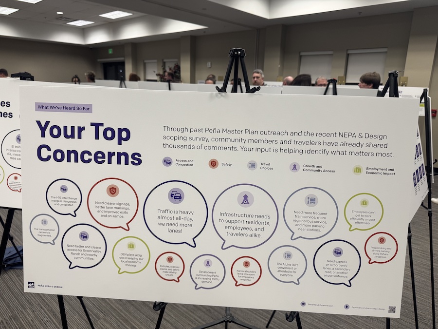 The Denver International Airport team opened a public feedback process for upgrades to Peña Boulevard at a Green Valley Ranch open house on Thursday, January 22, and nearby residents had big ideas.