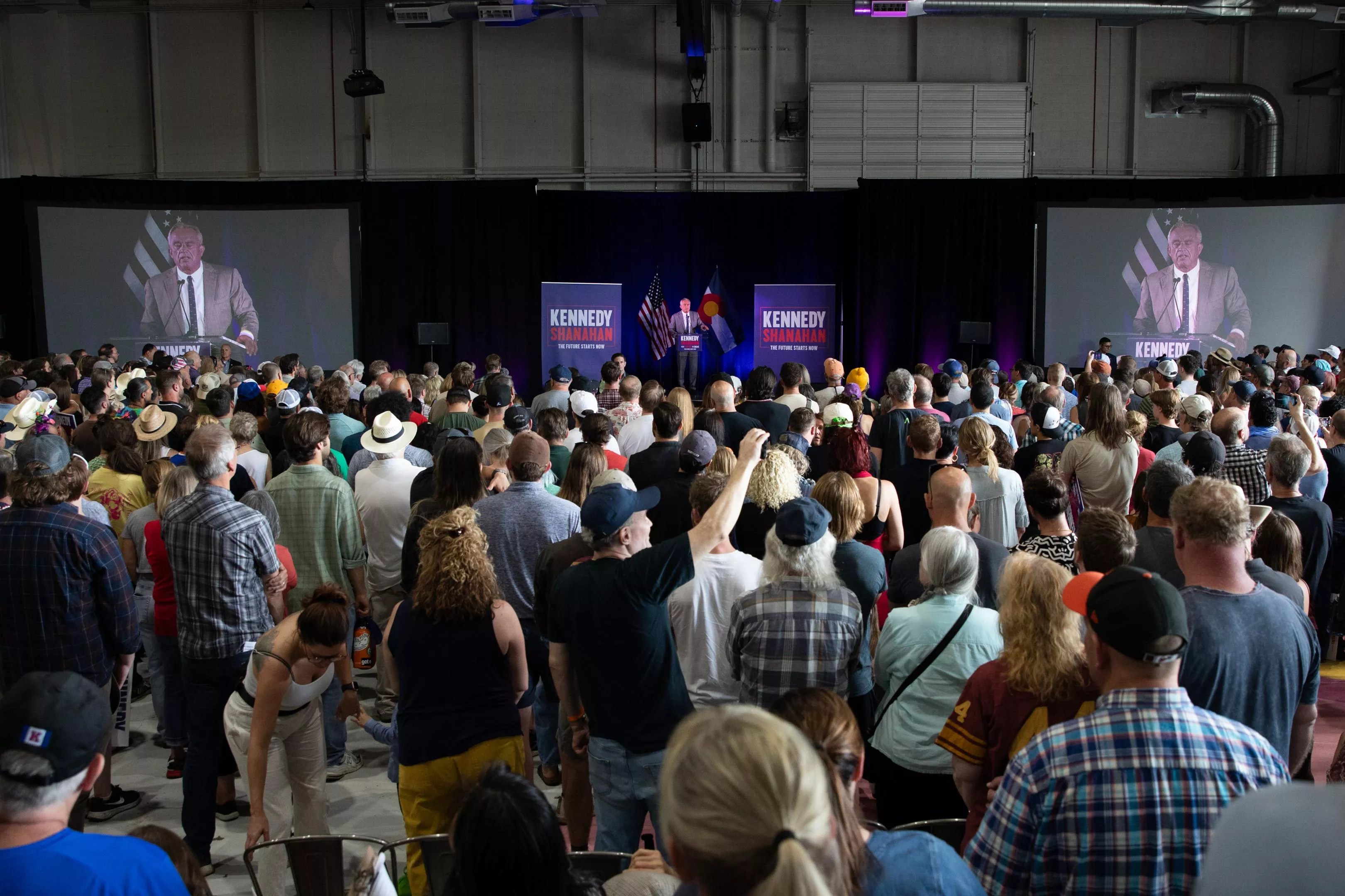 Over 1,000 people filled the Hangar at Stanley Marketplace for a rally with Robert F. Kennedy Jr.
