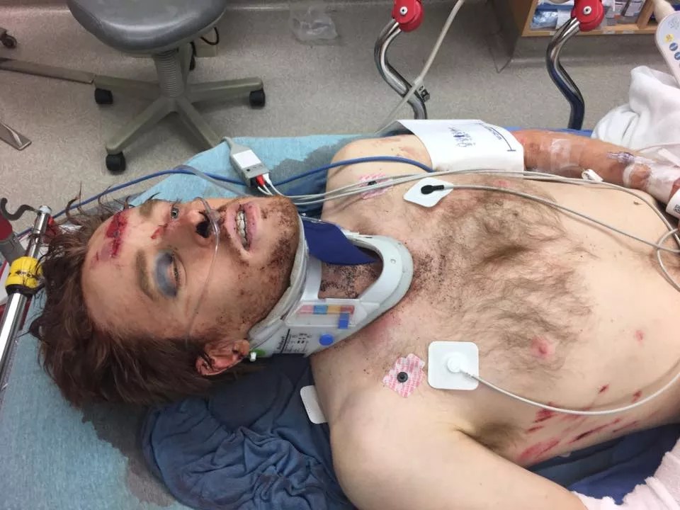 Right after Conor was transported from Eldo to a hospital in Boulder, he was transferred to a spinal surgeon at Denver Health. He had broken three ribs and seven vertebrae and had torn the UCL ligament in his elbow.