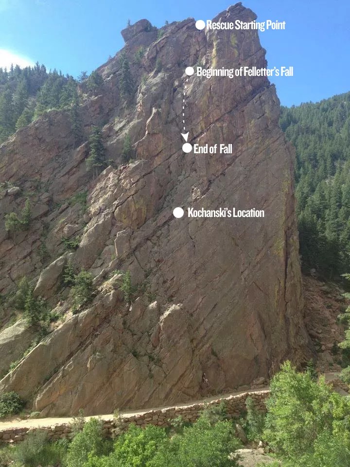 Kochanski couldn’t tell how serious Felletter’s injuries were; she couldn’t reach him without going off belay, which she did not feel safe doing.