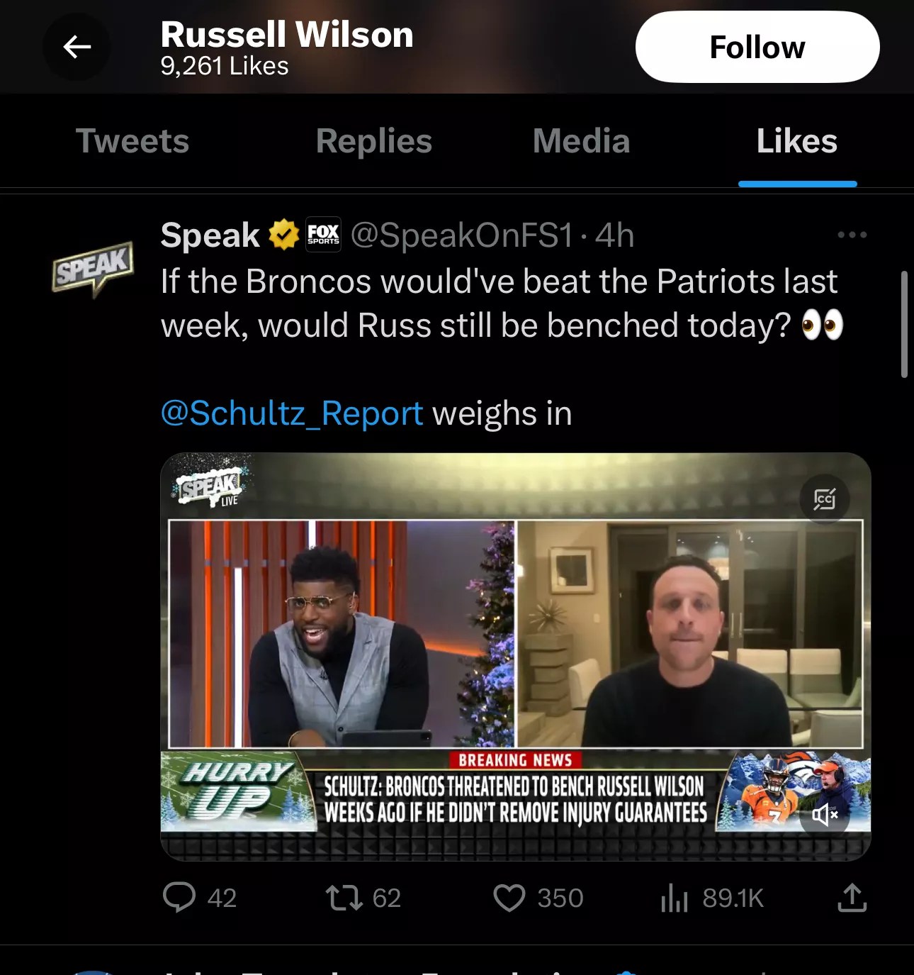 While Wilson may act like like he’s focused on the present and helping Stidham, his recent X (formerly known as Twitter) activity tells a different story.