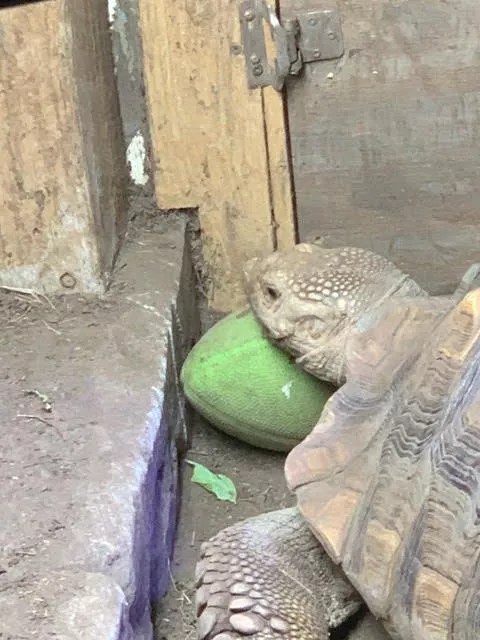 “The Sulcata Tortoise enclosure was grim,” she adds. “The toys in there were caked in a sticky grime from the floor of the enclosure, which of course also harbors animal feces and urine.”