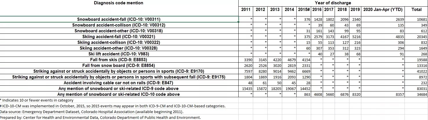Click for more Colorado Department of Public Health and Environment ski-injury data from 2017-2018.
