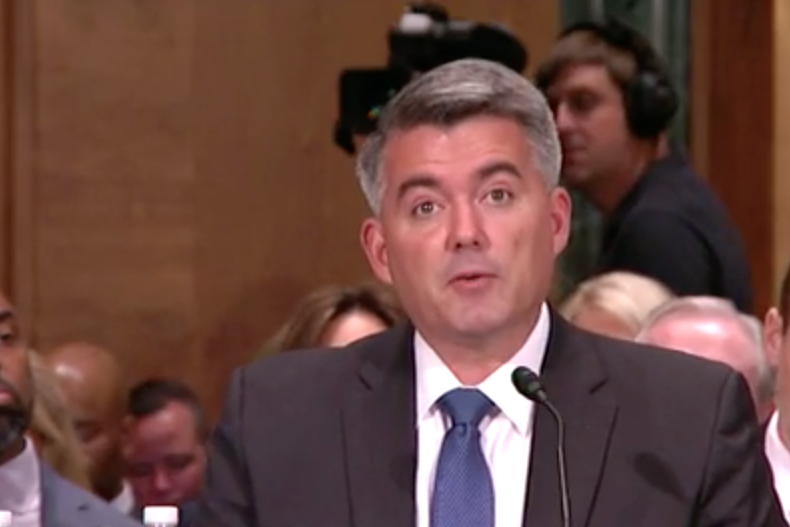 Senator Cory Gardner testifies during a July 23 hearing on cannabis banking.