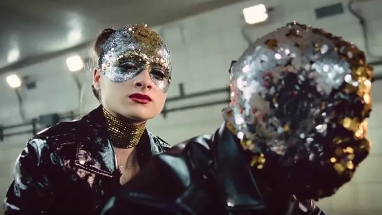 Masks from this fictional music video are donned by mass killers in Vox Lux.
