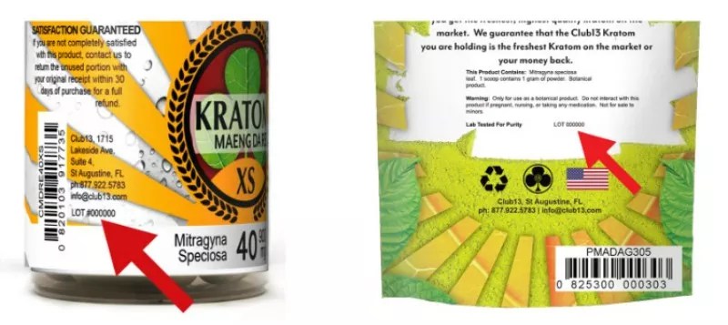 The “Maeng Da Red” capsule products come in 5-count, 25-count, 50-count, 100-count, 120-count capsule bottles marked with the following lot numbers on the bottom left side: MRMD013018, MRMD013118, MRMD020118, MRMD020518, MRMD022318, MRMD022718, MRMD030118, MRMD030218, and MRMD030618.