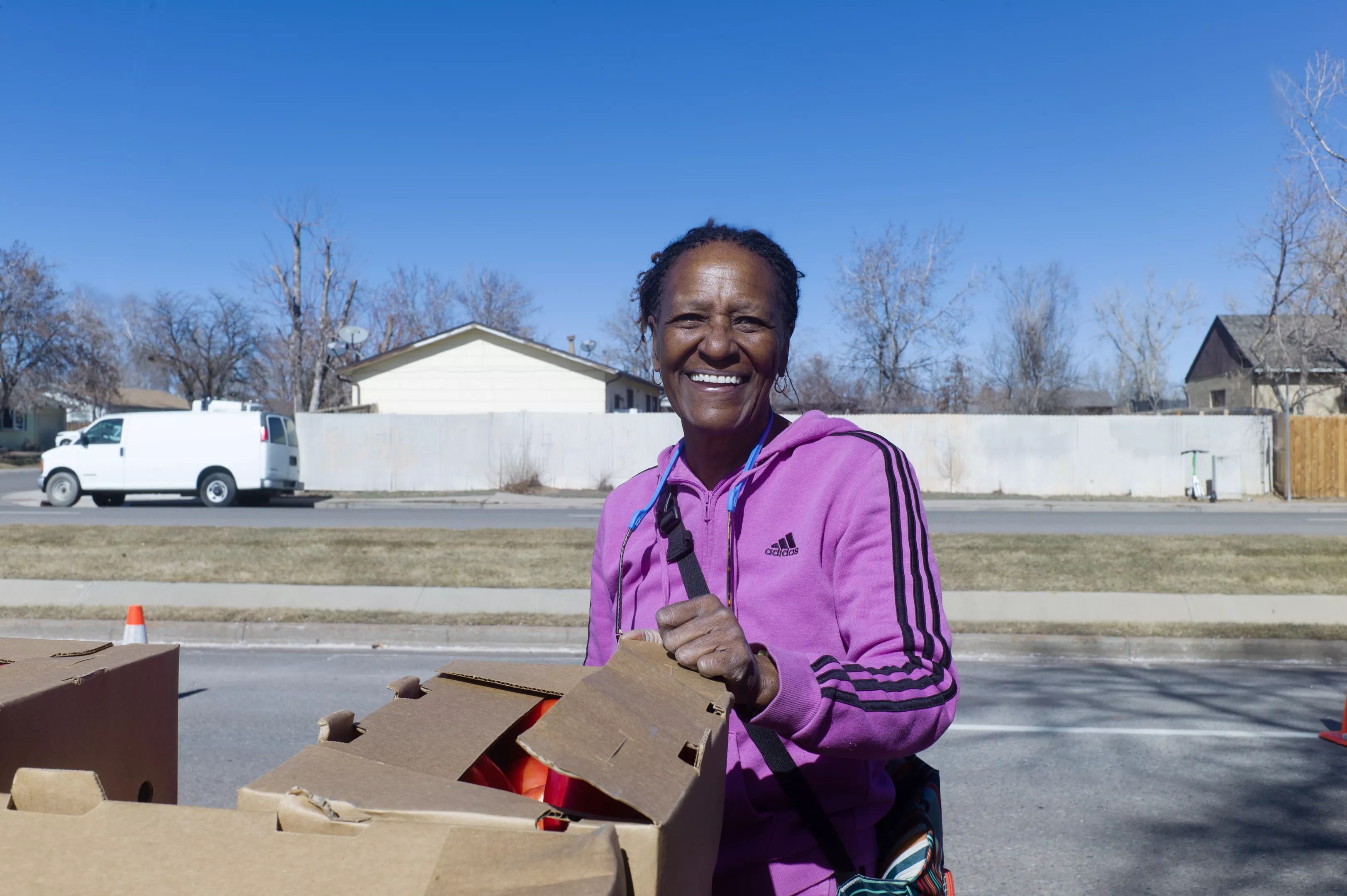Pamela Jiner has been volunteering to help feed the hungry by working at the Falcon Park food share in Montbello for the past six years.