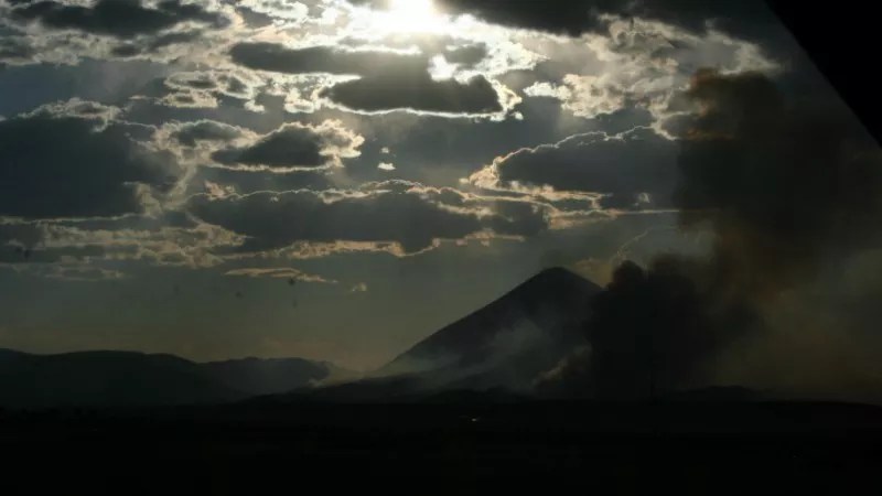 This InciWeb photo’s caption reads: “Mt. Mestas on July 2, 2018.”