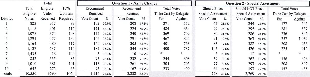 The majority of ballots cast by Stapleton property owners have voted against removing the name of a Klansman from the community name.