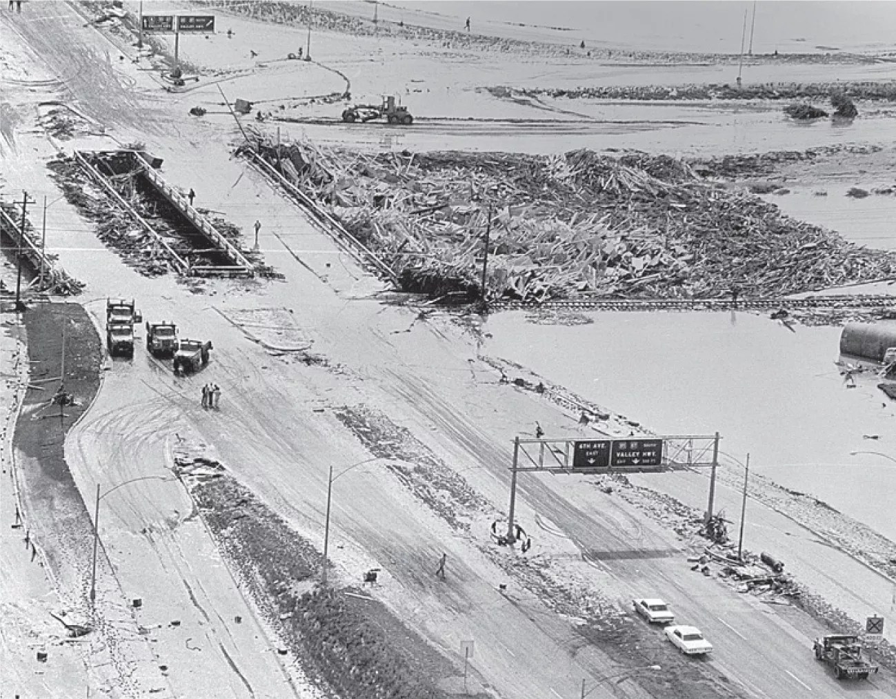 This is considered the worst flood in not just Denver history, but that of the entire state. Floodwaters washed over the metro area in June 16, 1965, when storms dropped fourteen inches of rain on the Castle Rock and Larkspur areas in under four hours. While Littleton got the worst of the flooding, it extended all the way into Denver; 24 deaths were reported across the state, though none were in the city. One of the most challenging aspects of dealing with the flood, however, was what the Littleton Museum website calls a “severe spectator problem”: Estimates at the time suggested that for every one person authorities were able to evacuate from the river bottom, 25 onlookers would move in to witness the natural disaster. As a result of the 1965 flood, construction on the Chatfield Dam began in 1967, and the Flood Control District was established in 1969.