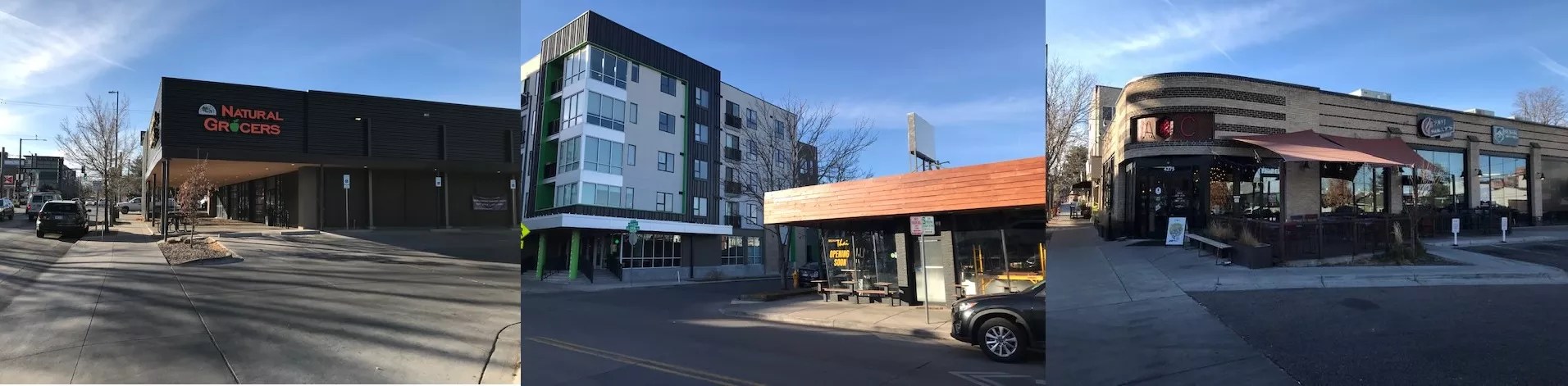 Left to right: what was Elitch Lanes, what was the vacuum repair place, and what was Ward-Carter Dance Studio.