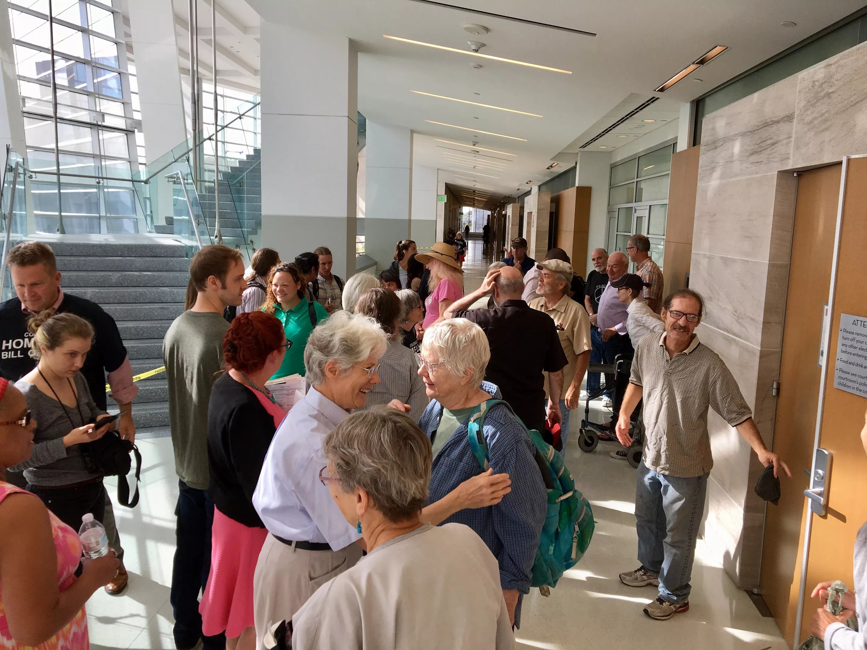 Supporters and media that gathered for Howard’s hearing on August 24.
