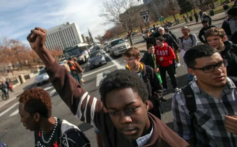 The approximately 500 students in question attended East High School, and their walkout and demonstration was initially so uneventful that by about 10 a.m., “we were being released from that particular assignment – the bicycle officers and some motorcycle officers from our unit, too. There were going to be other officers who continued further toward the high school and beyond.”