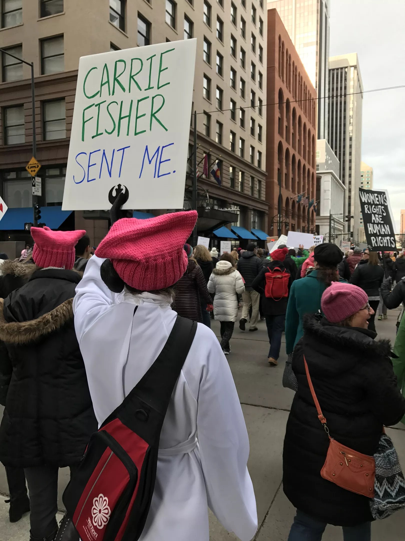 Princess Leia’s association with this sentiment is tenuous at best, but everything was coming up Star Wars at the march, and that’s never a bad thing. (He seems more like a Neimodian from the Trade Federation to us, but never mind splitting villainous hairs.) May the Force Be With Us, in numbers impossible to ignore.