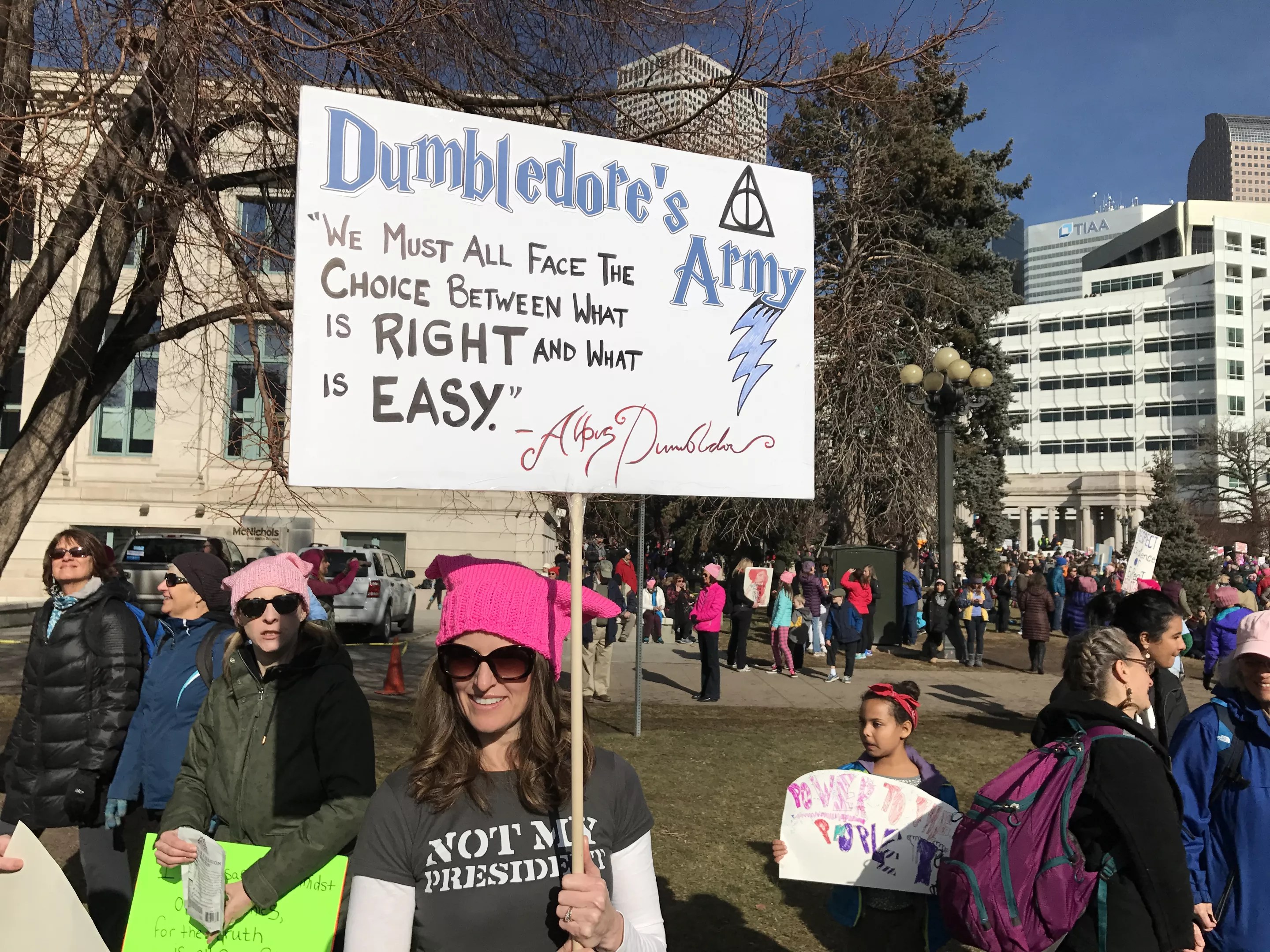 What that statement was, of course, varied from person to person and sign to sign. Some signs were traditional, some were profane, some were poignant – and some were beautifully geeky. After all, while you’re speaking your mind and participating in the democratic process, you might as well let your freak flags fly. In that spirit, here are the top ten nerd-tastic signs we saw at the Women’s March on Denver.