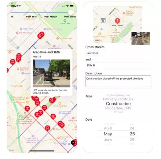 Through the existing website and newly launched iPhone app, the two organizations will be crowd-sourcing data through the end of 2018. There have already been over 900 posts since March, in which users provide a location, photo and written description of each observed bike lane obstruction.