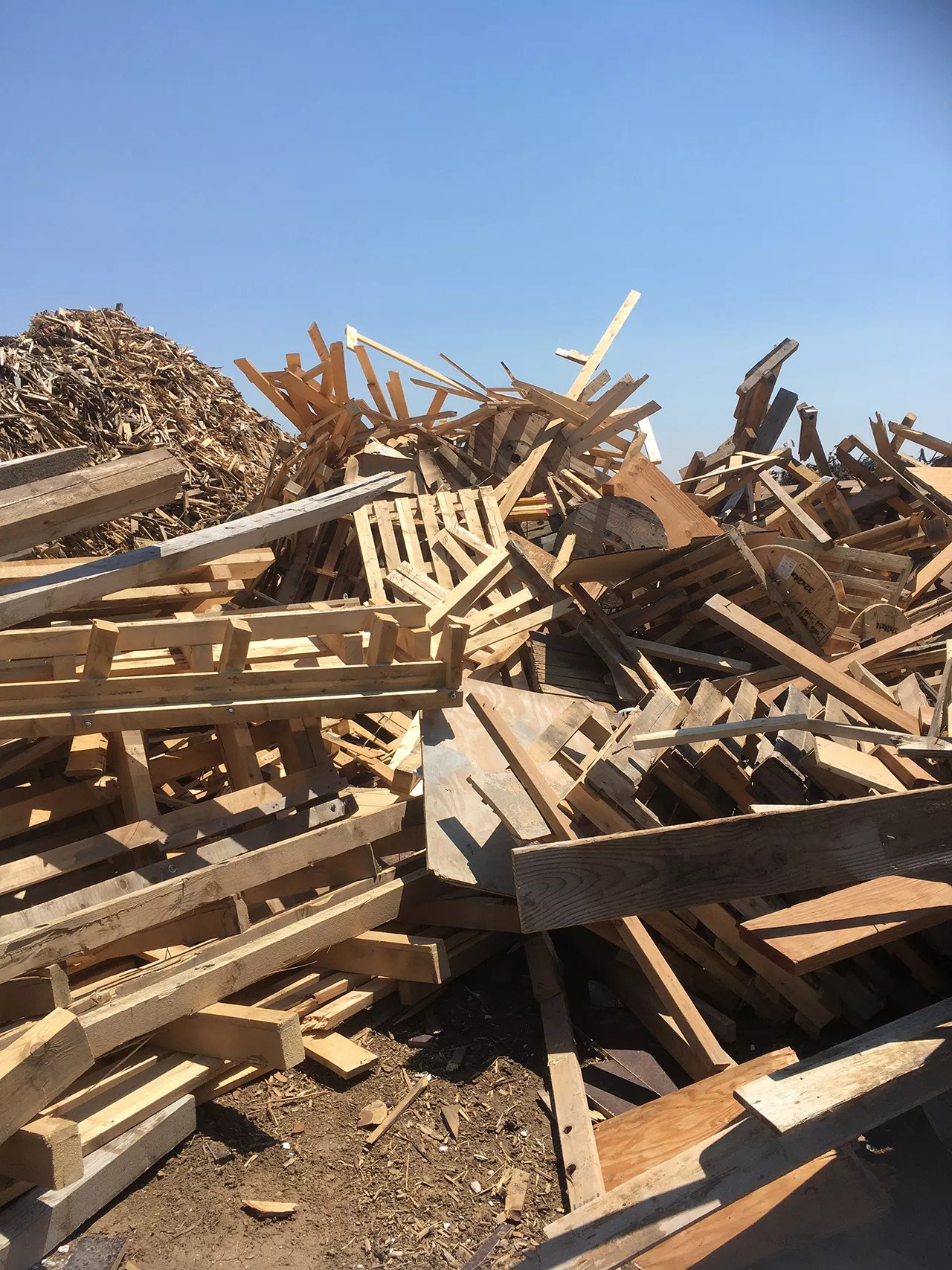Discarded pellets and other wood waste products that will be turned into biochar.