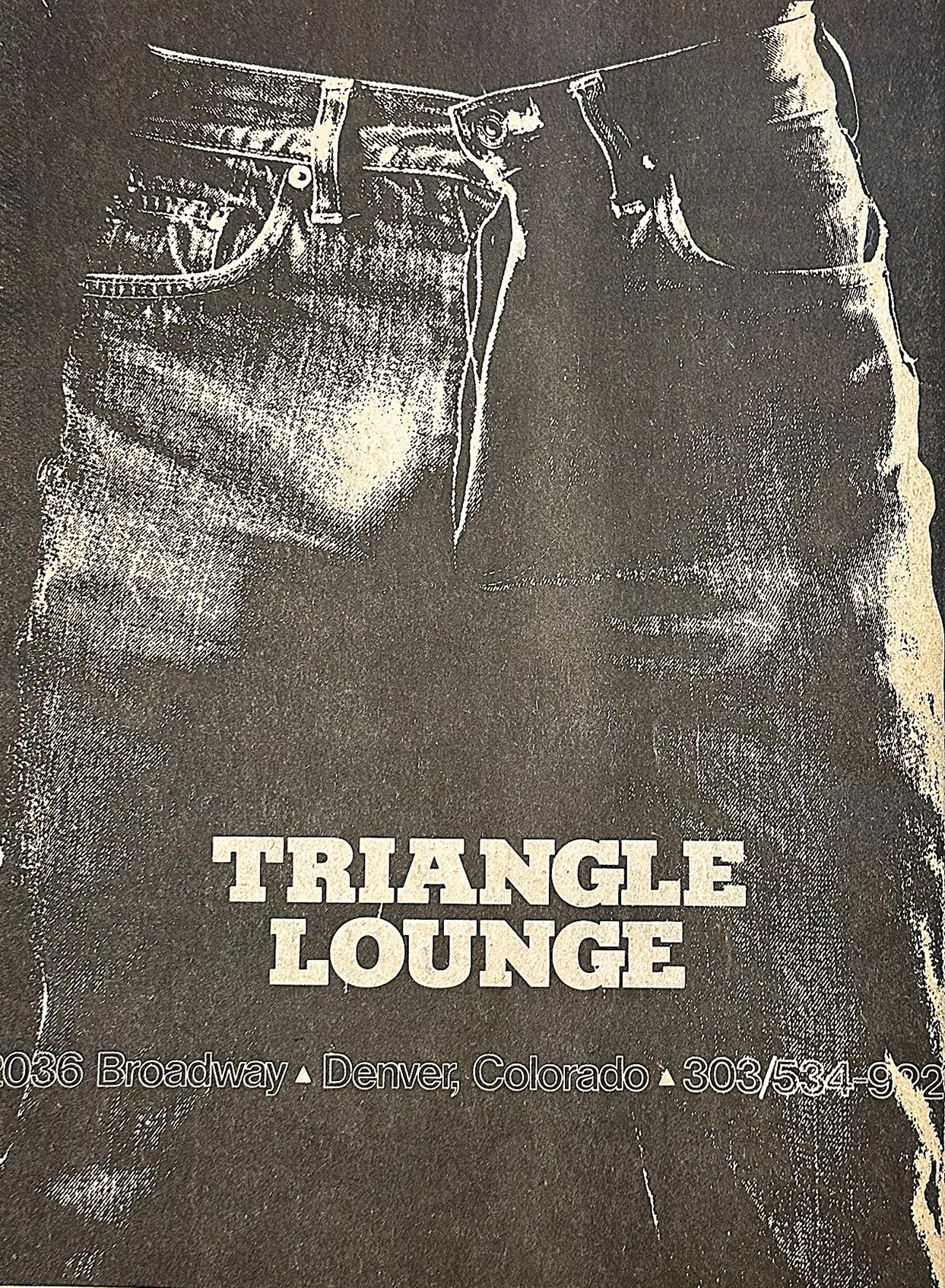 The Triangle was known in gay men’s circles as one of the nation’s premier leather bars; it was on the must-do list of any leather guy traveling to Denver for work or pleasure – or simply to escape more conservative towns in the Rocky Mountain West. Durity, who now lives part-time in Southern California, says that “even today among older leather men I meet in Palm Springs, they have a strong association between Denver and the Triangle.”