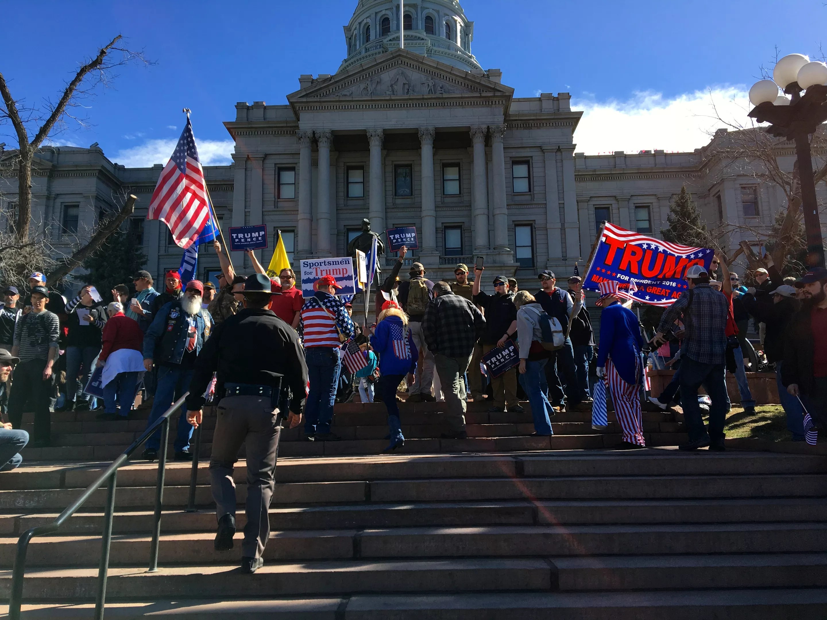 Colorado supporters of President Donald Trump made their presence known on Saturday, March 4, by staging a rally on the steps of the State Capitol building. Hundreds came to the rally, some wearing patriotic costumes (like Uncle Sam suits) and others waving “Don’t Tread on Me” or “Trump/Pence” flags.