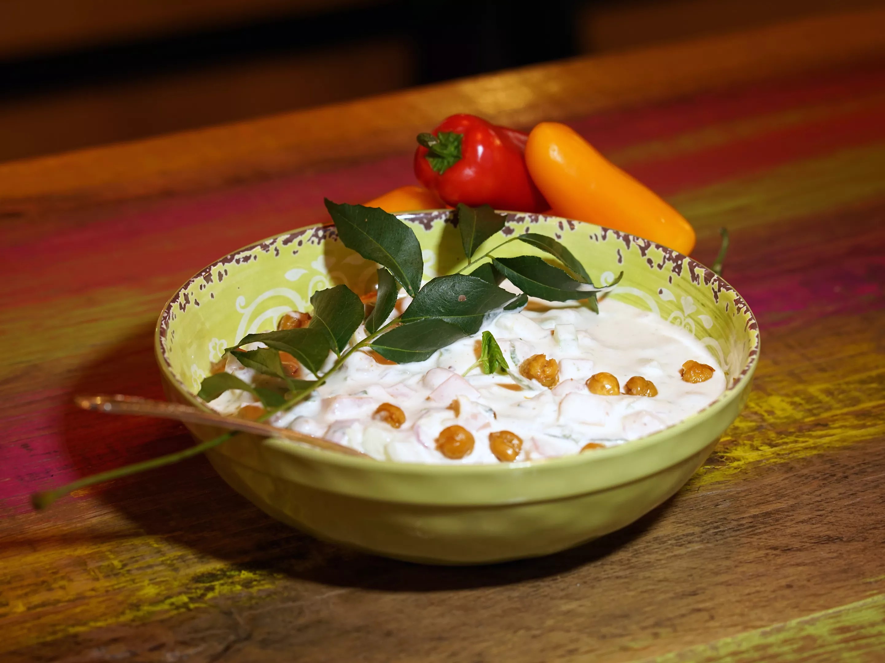 Peel shallots and slice them, along with the green chile, into thin strips. Add shallots, green chile, cucumber, tomato, ginger and cilantro to yogurt and stir. Stir in salt, cumin, black pepper and Ripple.