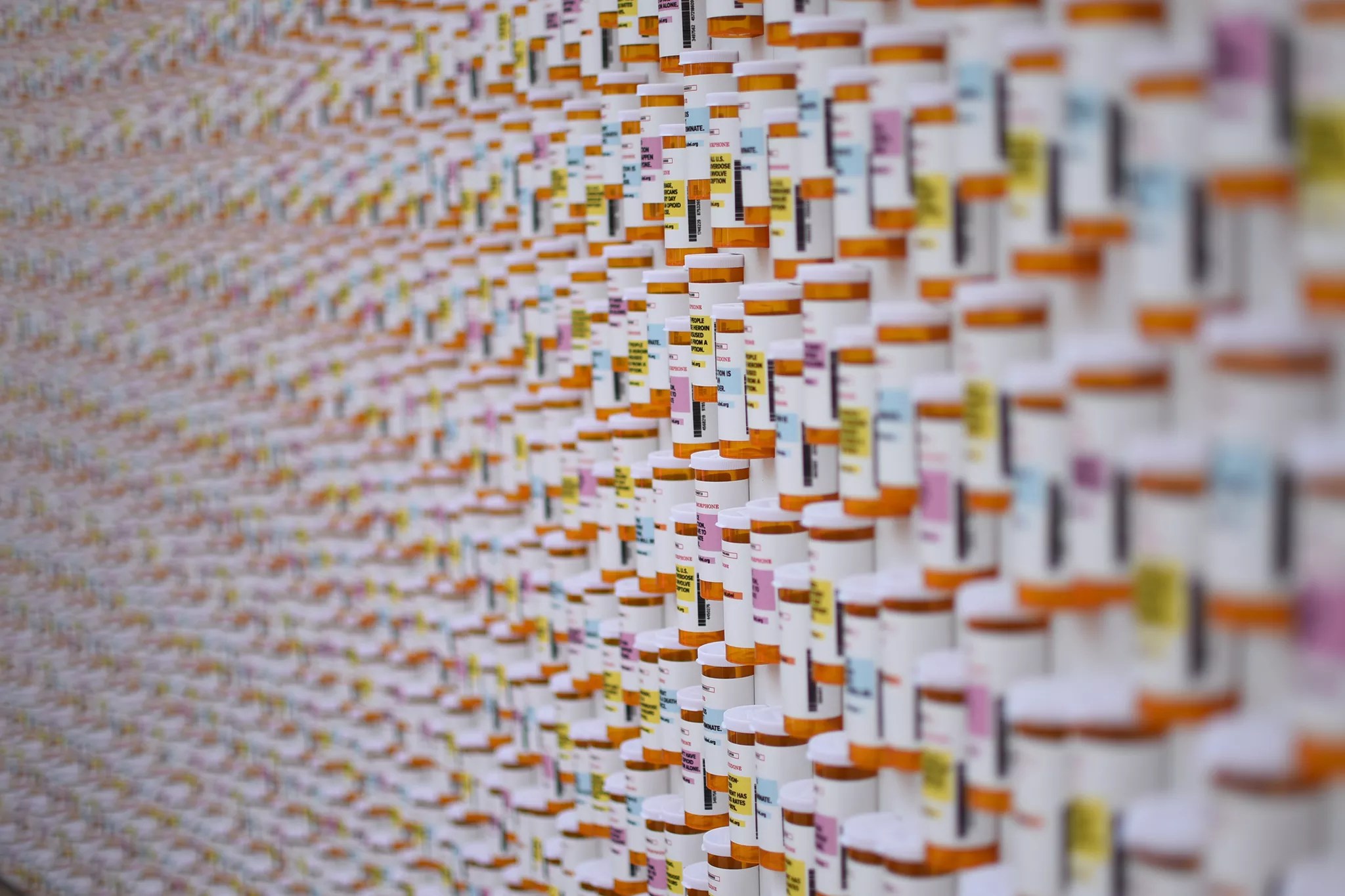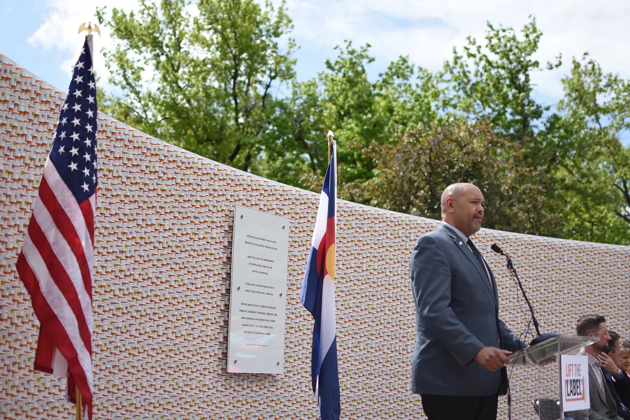 The Colorado Department of Human Services unveiled a memorial wall made of 4,200 prescription bottles at Civic Center Park on Monday, May 14.