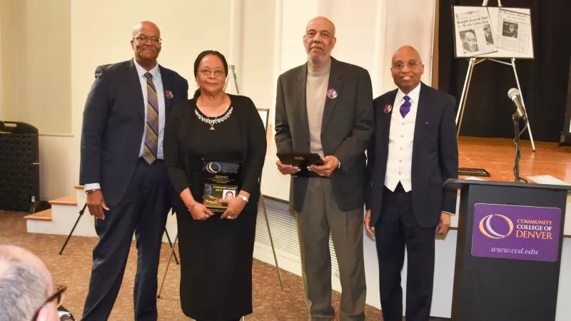Dr. Sharon Bailey and John Bailey, center, were honored by the Community College of Denver with MLK Community Leadership Awards last month.
