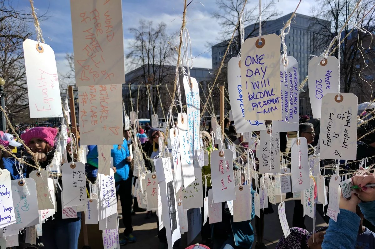 Lily Noteboom still remembers a sting of thousands of notes written by women at the 2017 Women’s March in Denver to their past or future selves. She can’t remember what she wrote, but she couldn’t have guessed she’d be organizing the march that would follow this event’s footsteps.