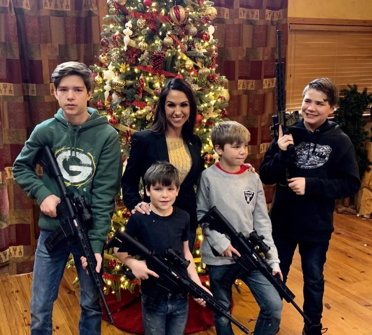 Boebert has had a number of opportunities to explain her terrible behavior over the years — and she seems to really have a blind spot when it comes to celebrating holidays. In 2020, at the height of the pandemic, she made fun of the tens of thousands of COVID-related fatalities by calling her Thanksgiving dinner a “turkey funeral,” since the suggested number of family dinner guests was only ten — but at a funeral, it was thirty. And of course, there was her 2021 Christmas card photo: Boebert and her kids posed before the Tannenbaum with automatic rifles. To make matters worse, that last one wasn’t even an original tone-deaf idea — she took it from Kentucky Representative Thomas Massie.