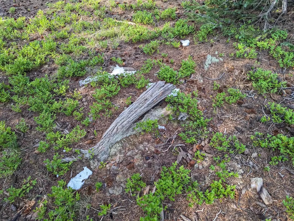 Toilet paper waste on Mount Elbert in the San Isabel National Forest in Colorado.